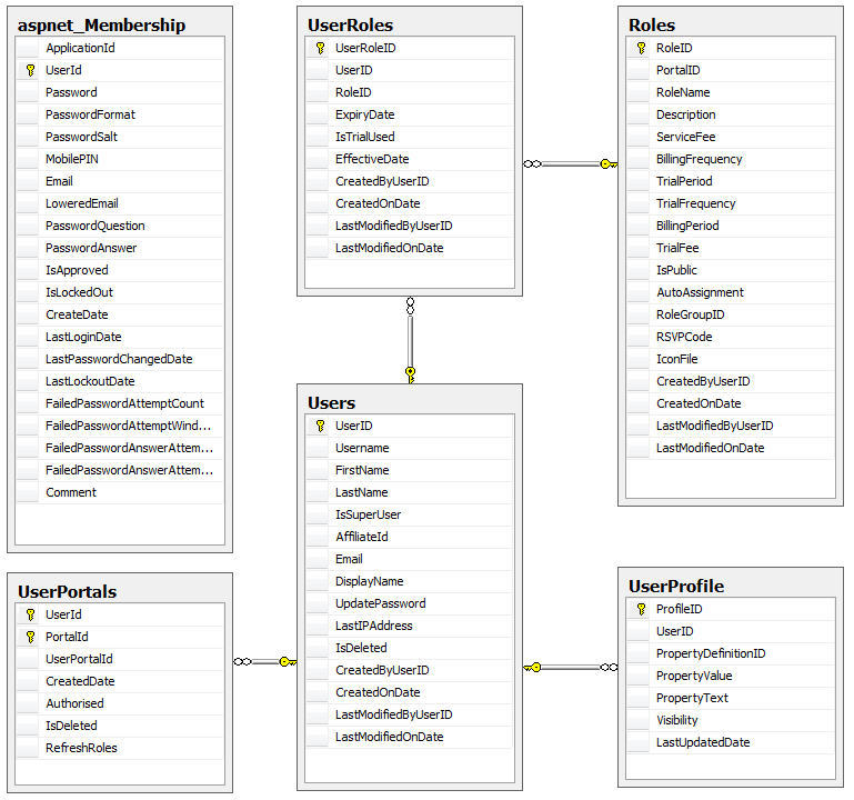 ILS and IPN.NET take care of all the license generation and authentication, so the only thing needed is to get that into DNN. The relevant user-portion of the database is (click to zoom):